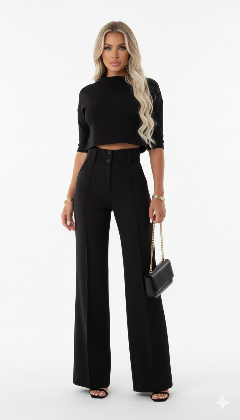 ✅ Tailored pants die business en pleasure combineren De high-waisted tailored broek met center crease elongeert je benen endless en geeft instant polish. De structured fit flatteert je curves terwijl hij professional genoeg blijft voor serious occasions. Draag naar important meetings voor boss energy, style voor evening events met heels en statement jewelry, of rock tijdens special occasions wanneer je wilt dat iedereen jou onthoudt. Deze set whispert niet — het schreeuwt success, style en absolute self-assurance.